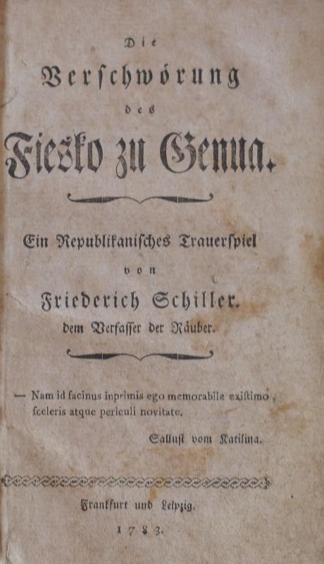 “La congiura del fiesco” opera del drammaturgo tedesco Friedrich Schiller, scritta nel 1783 nel fermento del periodo pre-rivoluzione francese con uno smaccato fervore shakespeariano, trae spunto da un reale fatto storico accaduto a Genova nel 1547, documentato e narrato dal Cardinale Retz e dallo storico William Robertson. Dell’opera ci sono anche due versioni cinematografiche del 1921 di Paul Leni “Die Verschwörung zu Genua” e di Ugo Falena.