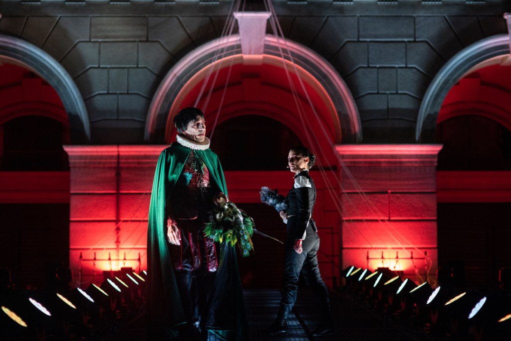 Un plauso assolutamente va fatto anche agli attori, tra tutti sicuramente il protagonista Simone Toni nei panni del Fiesco che sebbene limitato dalla stampella per via di un infortunio, riesce a condurre con carisma il suo personaggio anche sfruttando a suo vantaggio la “storpia” fisicità, conferendo un’energia ambigua e un dinamismo sinistro al suo andamento corporeo. Ma è giusto ricordare l’intensa Leonora di Barbara Giordano, l’insopportabile Giannettino Doria interpretato con perfetta antipatia da Aldo Ottombrini e il brigantello Moro doppiogiochista Maurizio Boussa, che ricorderete come l’immigrato spalla comica in Tolo-Tolo di Checco Zalone. Ancor più merito per aver allestito un grande successo in piazza va agli attrezzisti, agli scenografi, ai costumisti, ai curatori di musiche, luci e video, che hanno permesso di immergere al meglio la storia nel luogo che più l’addiceva, a due passi dal Ducale e con via di fuga in Scurreria. Ci pare giusto fare i loro nomi: scene e costumi Anna Varaldo, musiche Andrea Nicolini, disegno luci Aldo Mantovani, video Davide Riccardi, aiuto regista Alice Ferranti, movimenti coreografici Alessandra Manari, maestro d’armi Giovanni Sciaccaluga, direttore di scena Fabrizio Montalto, capo macchinista Angelo Palladino, macchinista Nathan Copello, attrezzista e realizzazione maschere Desirée Tesoro, elettricista Marco Giorcelli, fonici Edoardo Ambrosio, Claudio Torlai, realizzatrice e tagliatrice Maria Angela Cerruti, sarte Irene Barillari, Angela Siviero, parrucchiera e truccatrice Barbara Petrolati.