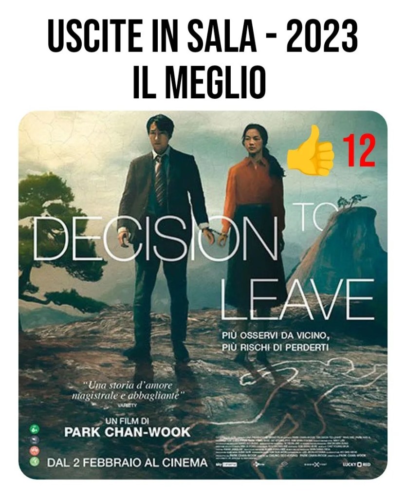 Rispetto a un passato fatto di vendette, preti vampiri, giovani che si credono robot e legami sul filo dell’incesto, Decision to Leave è piuttosto uno studio sulla repressione, sulle inibizioni che si traducono nella nostra incapacità di relazionarci col prossimo, sulle barriere che ci imponiamo nel tentativo di non cedere al desiderio: una visione delle cose che si esplica in un film registicamente perfetto, che tiene i suoi personaggi costantemente divisi, ora fisicamente, con vetri, specchi e schermi a frapporsi di continuo fra loro, ora linguisticamente, con una protagonista che è di fatto una persona diversa a seconda che si esprima in coreano o in mandarino, ora narrativamente, con due passioni raccontate a distanza e destinate a non incontrarsi mai.