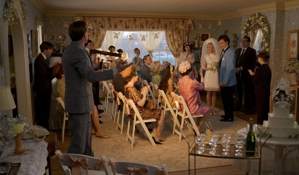 Qui una prova di straordinaria teoria cinematografica, un luogo, un’ inquadratura, il tempo che l’attraversa dall’origine del mondo fino ai giorni nostri. Un quadro (ristretto) che si scompone attraverso diverse “picture in picture”, immagini nell’immagini che dialogano tra lo spazio e il tempo creando un montaggio interno, messo in movimento magistralmente, ereditato dalla graphic-novel “Here” di Richard McGuire (1989). Storie e pezzi di memoria che si perdono nel tempo ma che si legano e si sostituiscono. Il punto macchina che si muove solo quando è il momento giusto, ovvero quando è il momento di lasciar andar via – quel luogo (di memoria): l’inquadratura che placida cambia prospettiva ed esce dalla finestra facendosi cornice sempre più piccola, sempre più lontana.